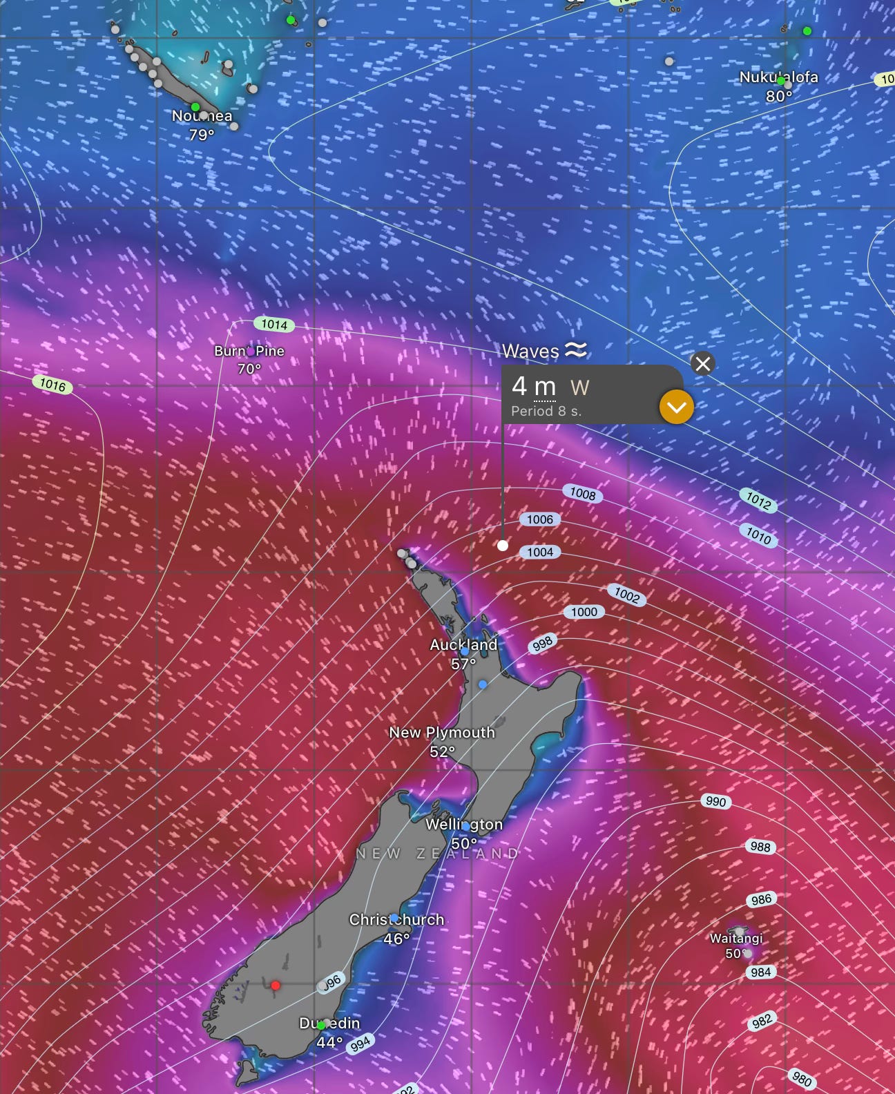 Here’s one. We decided not to leave on the 22nd. Had we departed, we’d be making landfall in a full-on gale in New Zealand!