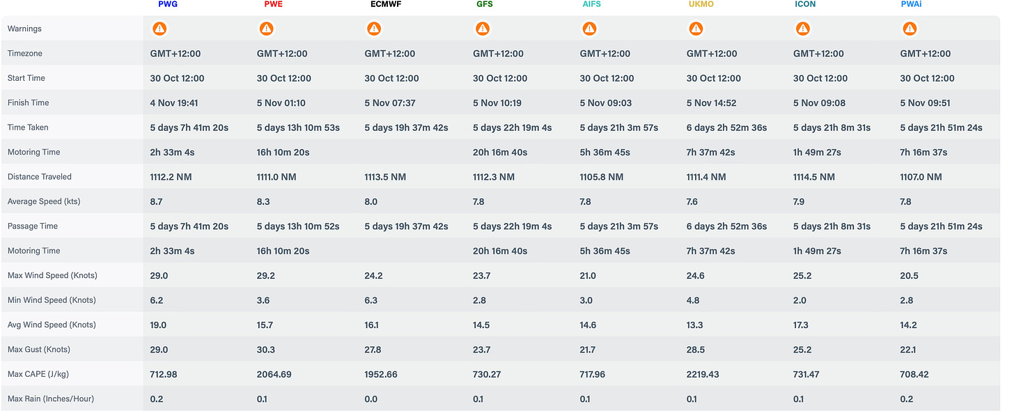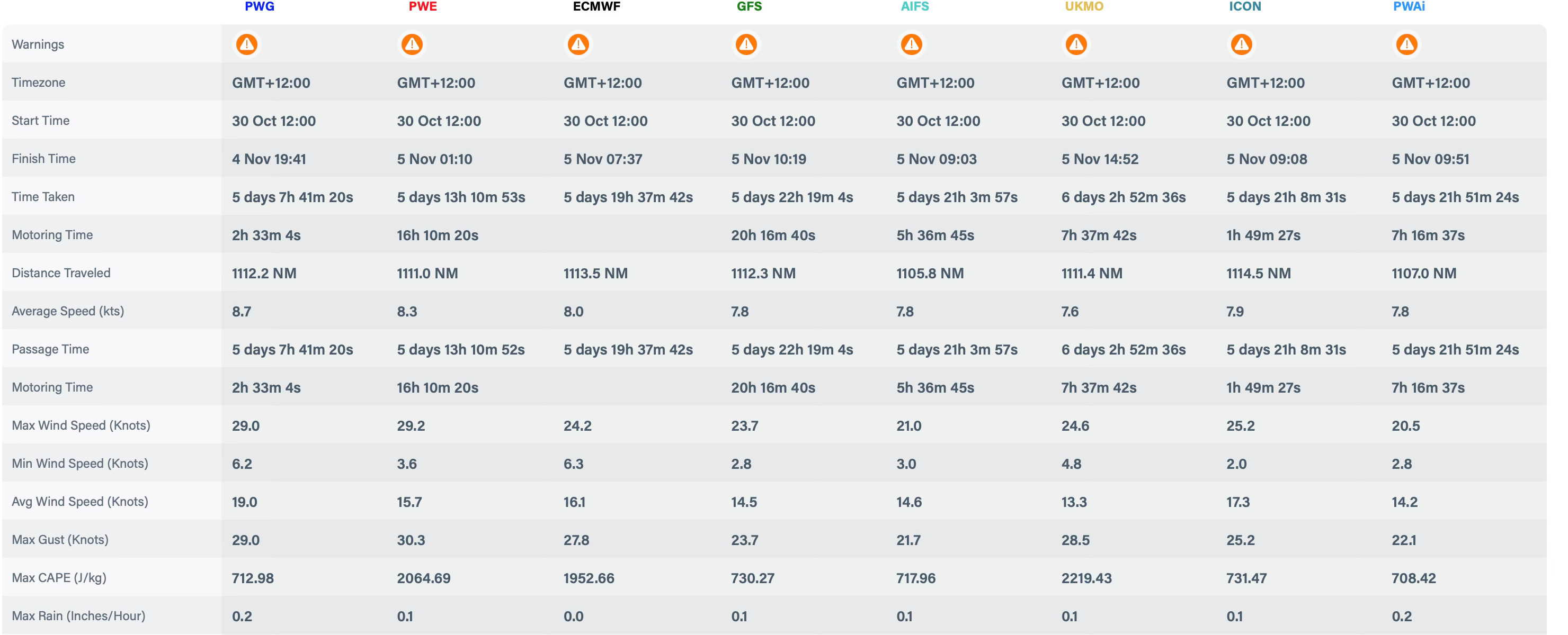 Then, on or around day four, we’ll cross the remnants of a low-pressure system currently lying across the route. That will bring rain and rough seas again.