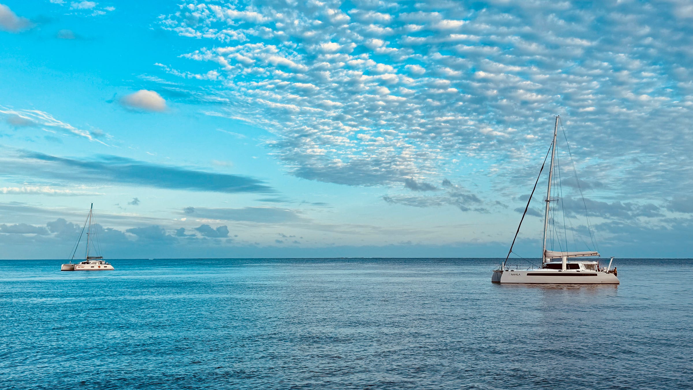 Here we are in the Yasawa archipelago of Fiji sharing an anchorage with one of each!