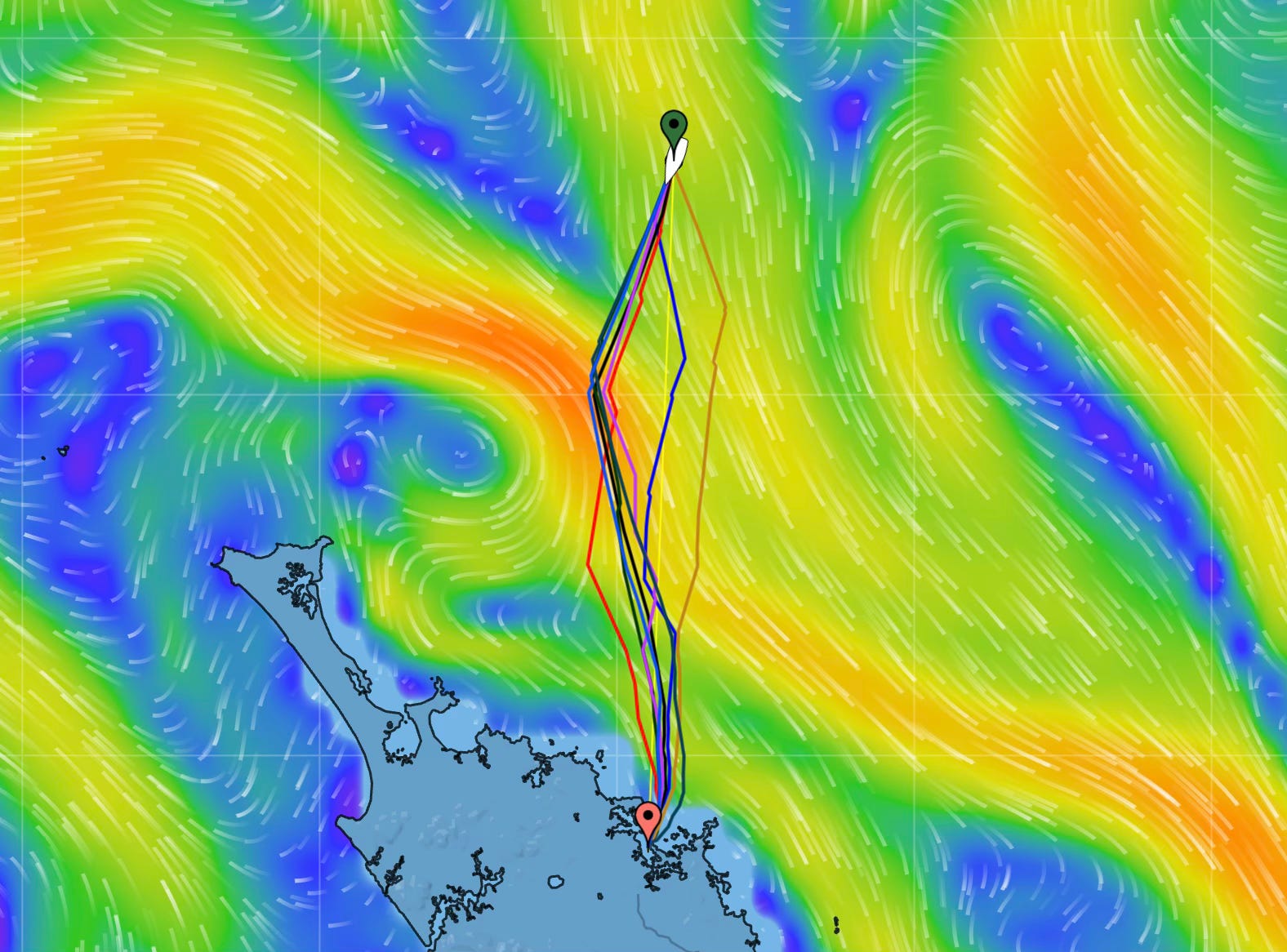 We’re routing west to 34:30S 174E to pick up better current before turning south to the entrance of the Bay of Islands.