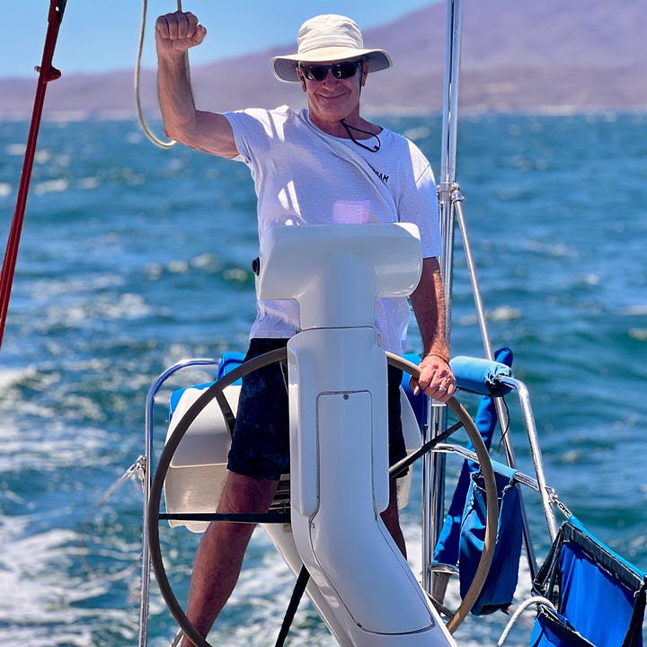 We sailed in the Vallarta Yacht Club’s “Merietas Madness” ocean race, a 32-nautical-mile race around the Merietas Islands on the west side of Banderas Bay. The race is designed to be a fun race and an excuse to spend the day sailing around the bay. We managed a respectable finish. Not bad for a boat that we are still learning to sail and a good showing by the yacht club’s newest members (us).