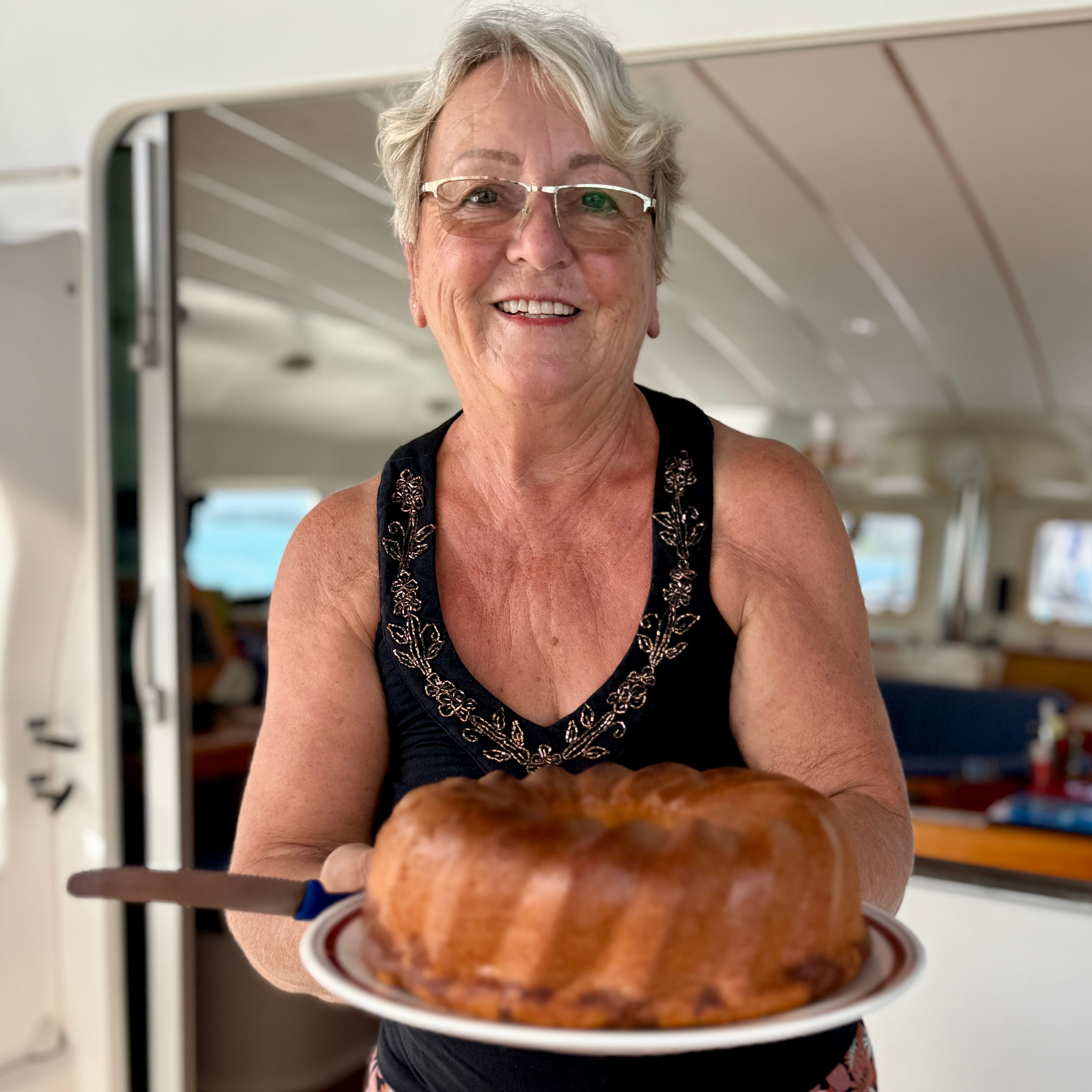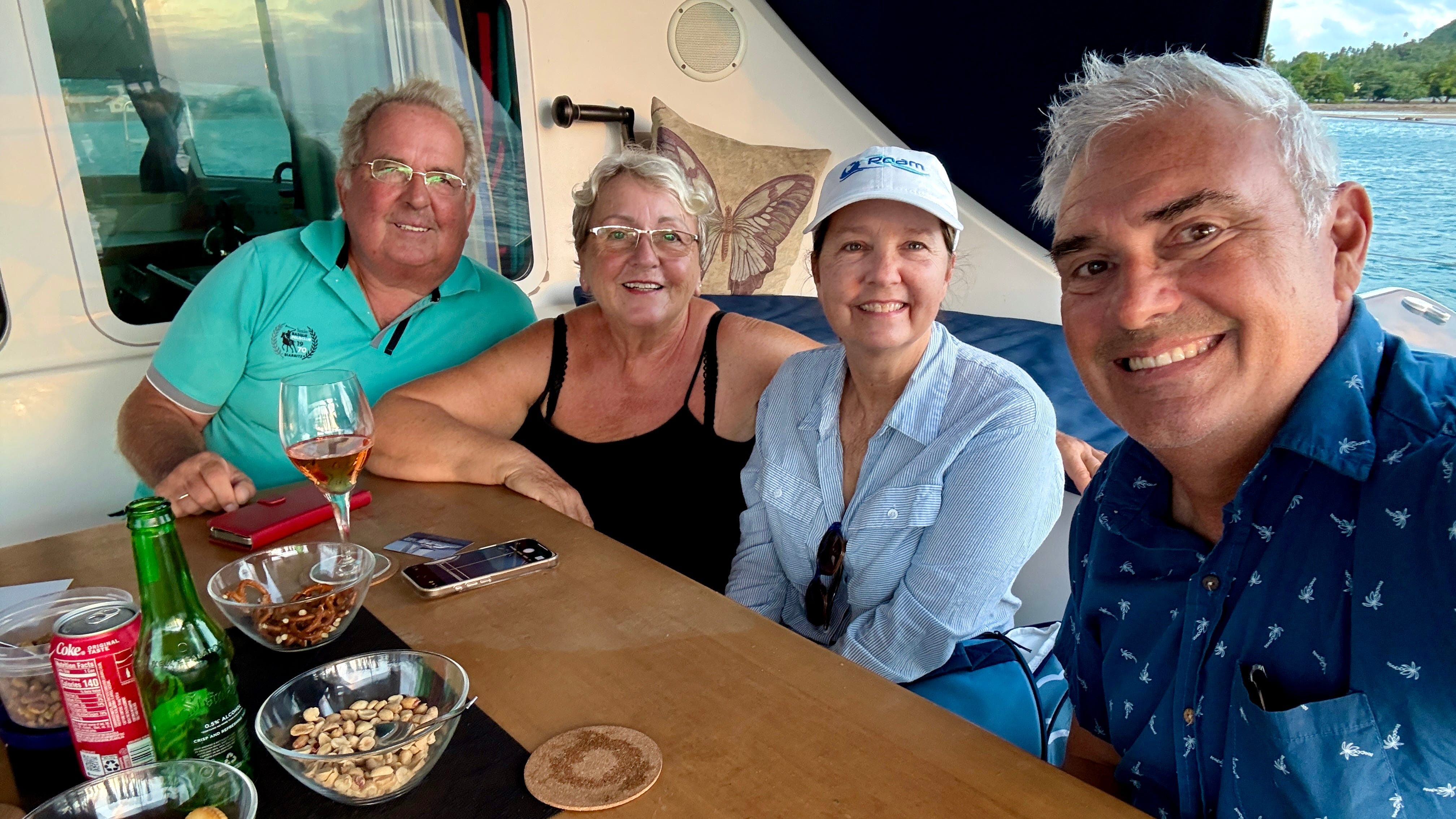Only one other boat was visiting while we were there—the German flagged, Usi, a Lagoon 410 Catamaran. Ursula and Albert from Germany have been out sailing the world for almost a decade. We traded happy hours aboard each other’s boats. Ursula had us over for Kuchen and Kaffee before we left.
