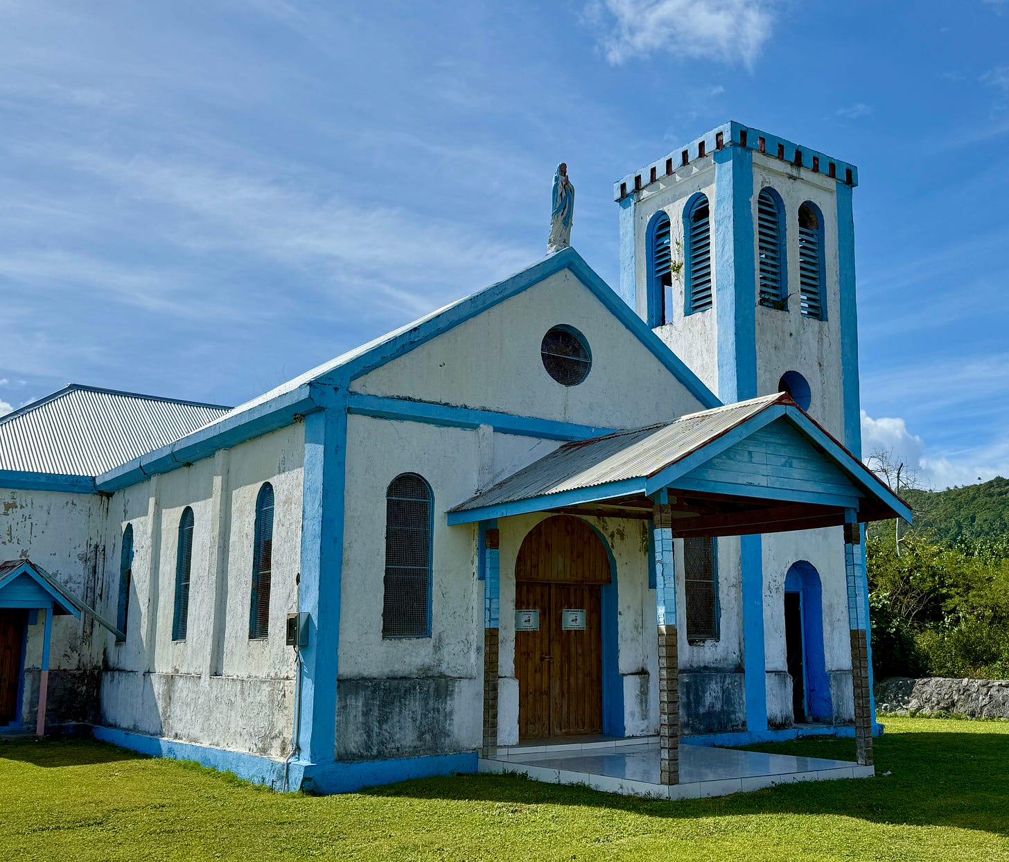 Officialdom is relaxed in Niua. We found the customs lady’s WhatsApp number and arranged to meet her in her office. The next day, we had our departure clearance. Coming ashore gave us a few opportunities to walk around the island and meet some of the locals. The customs people offered to drive us around the island and sold us some fresh bananas.