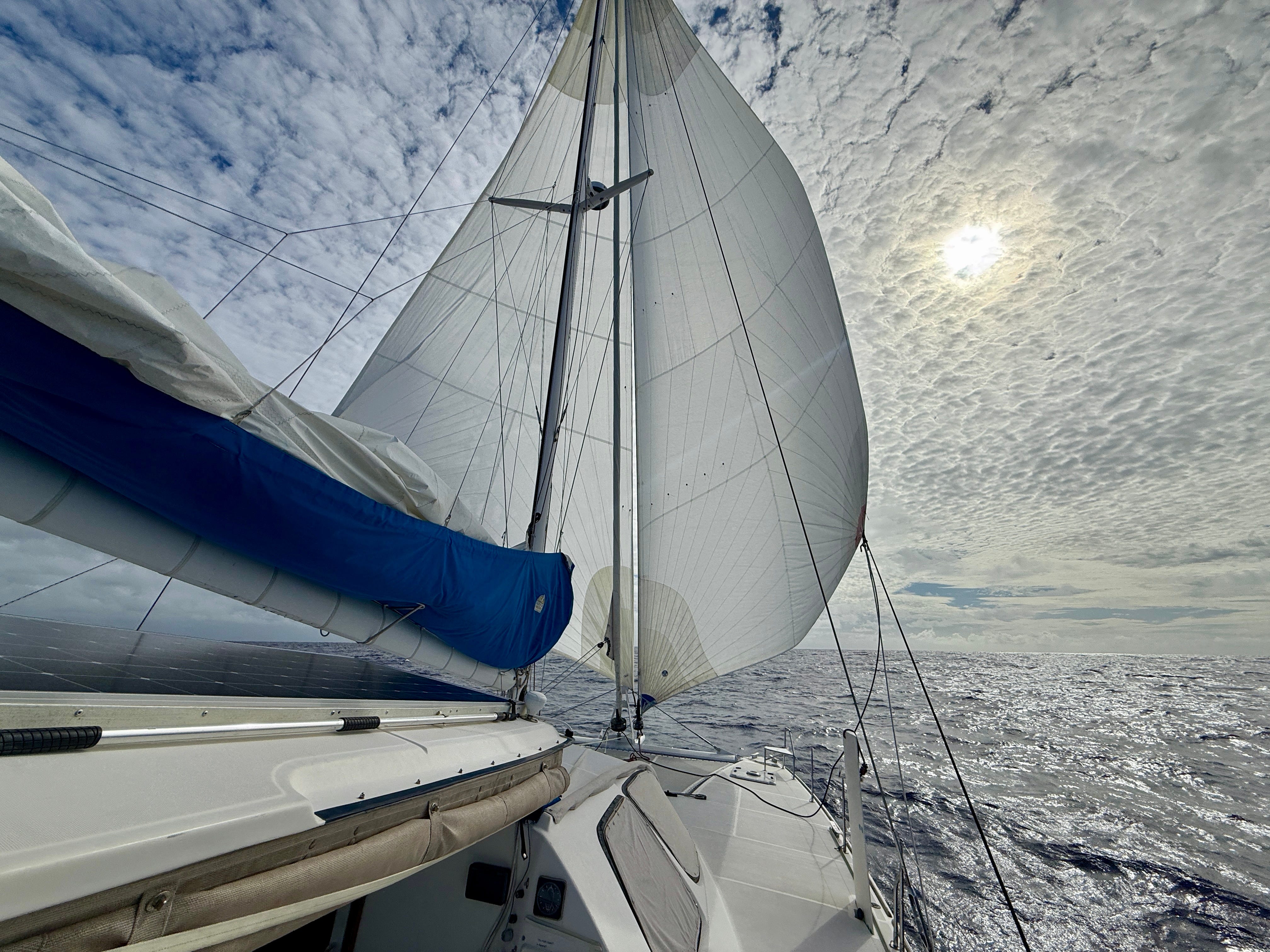 All is well. Niue lies 190 miles dead downwind. We’ve hoisted the code zero wing and wing with the code 65. Jack and Jill, as we call them. We will be in Niue tomorrow midday!