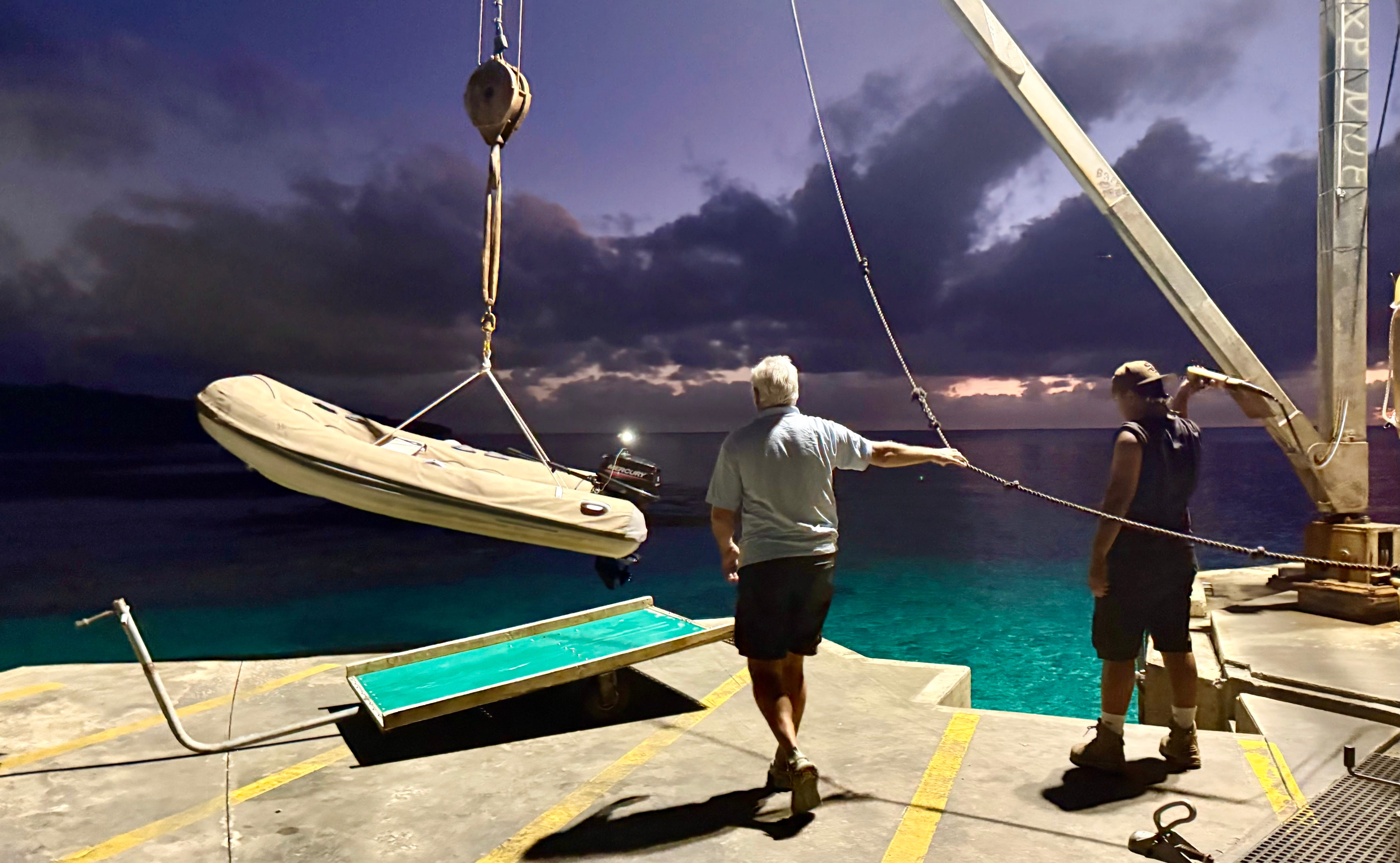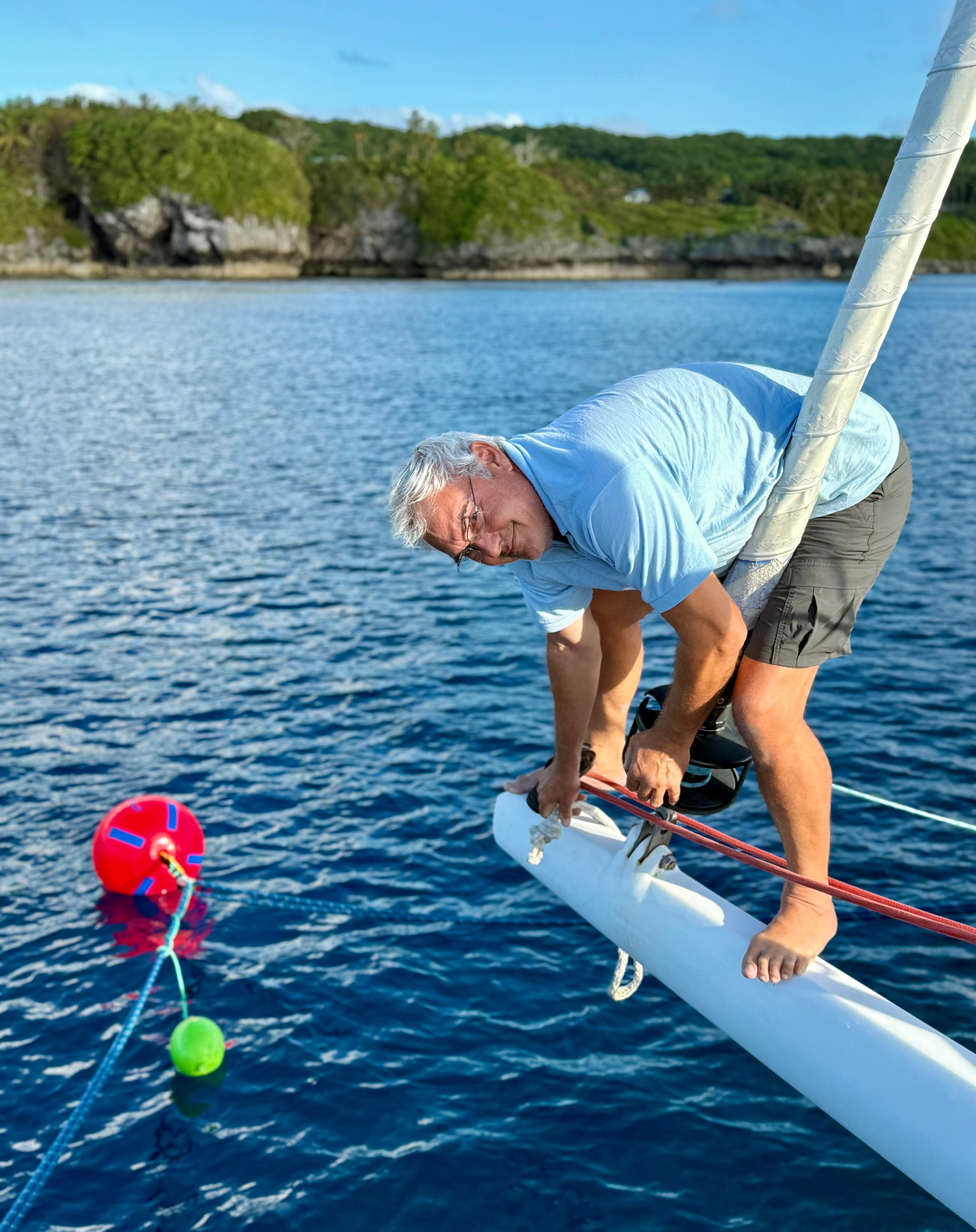 There is no protected harbor on Niue. It’s a deep, open roadstead. You can’t anchor. The local yacht club installs 15 moorings every season. These are in excellent condition and well maintained. They remove them during the off-season to refresh all of the components. You have to reserve one and pay for it in advance.