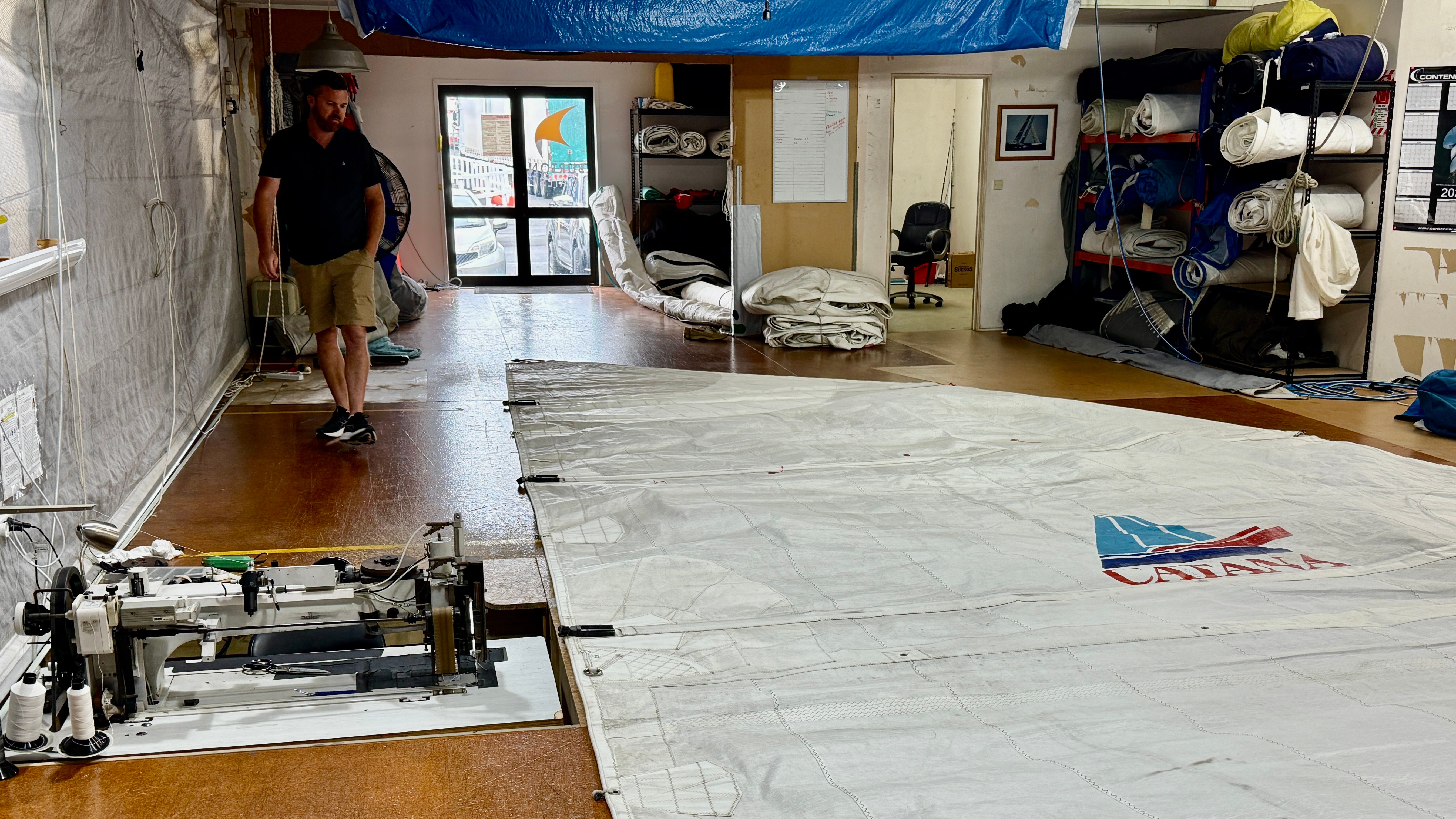 Repair the main, Solent, and Code65 sails.