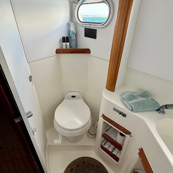 One evening we were aboard our friends Mary and Kevin’s boat, Pisces. Pam emerged from below having used their head. She looked at me, pointed her finger, and said, “We are getting one of those.” Happy wife, happy life. The old VacuFlush system will come out, and their place will go new Sanamarin 31 toilets. These are simpler and more reliable. Trust me, this is a good thing.