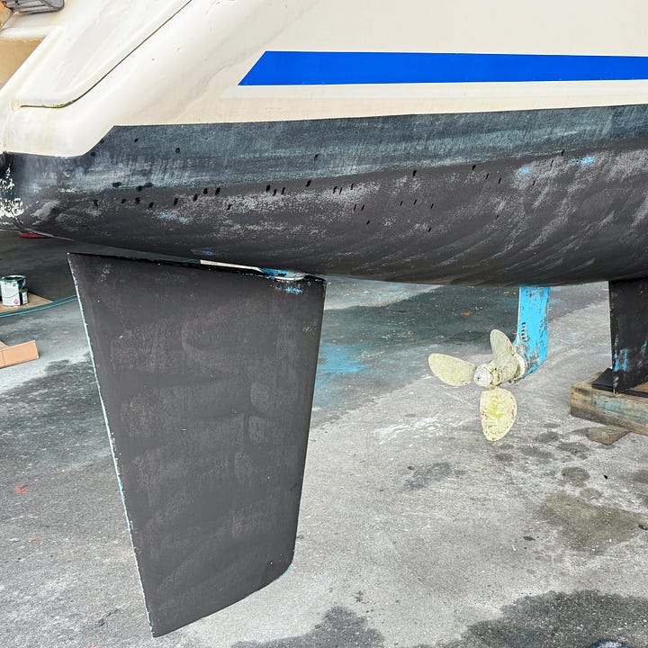 After three years and 10,000 nautical miles, it’s time to reverse the entropy. Roam is out of the water, on the hard, and in the paint shed getting a well-deserved sprucing up. She is 25 years old. Some of the systems, components, and furniture are original. Sailors call this a “refit.”