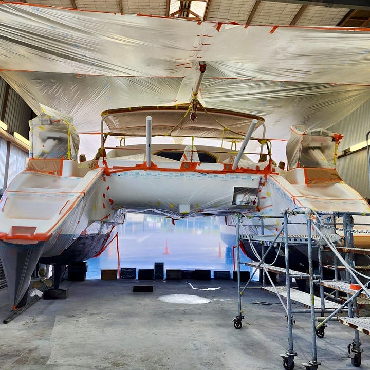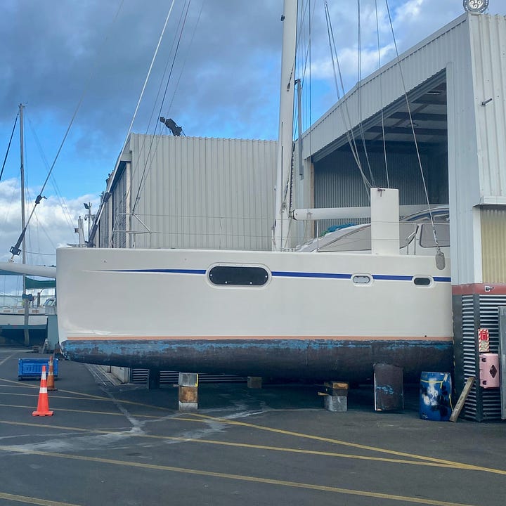 Greg Prescott runs Tauranga Marina and boatyard. He’s a fellow Catana owner. We got connected a few years ago via the Catana Owners Group. He made a persuasive case to bring Roam to Tauranga if we ever got the chance. He knows how to haul and block these boats. He was willing to project manage the work while we were away. He did to his boat many of the projects we’re doing to ours. The value of an experienced project manager cannot be overstated.