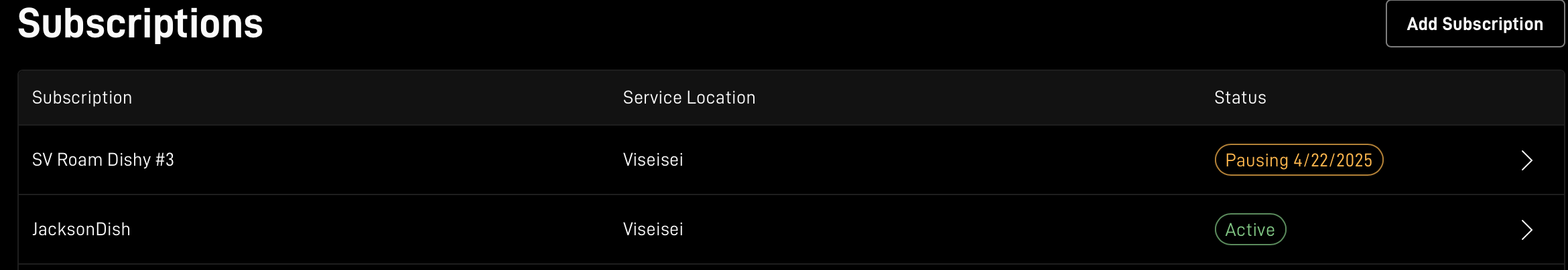 Once the spare dish was up and running for two days, we paused the subscription on the failed dish. That way, we don’t have to pay for two subscriptions. Once we pick up our warranty replacement in Fiji (a Gen3 dish), we’ll decide what to do next.