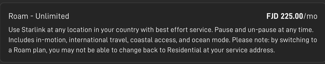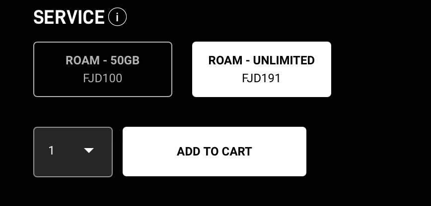 Subscription Plan: Roam - Unlimited: 225FJD (~$100.USD) per month