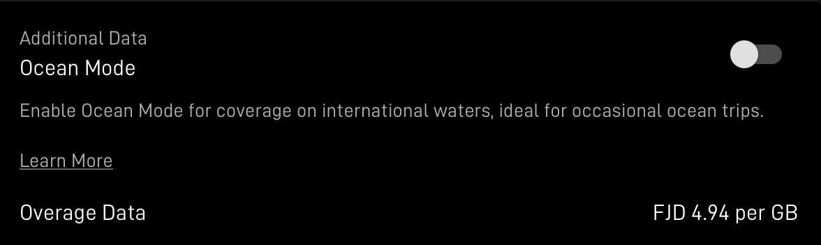 We’d pay $324FJD/mo for a 500GB block, which is about $141USD/mo. It’s not as good as our current plan, but still a great deal for high-speed internet on a cruising sailboat.