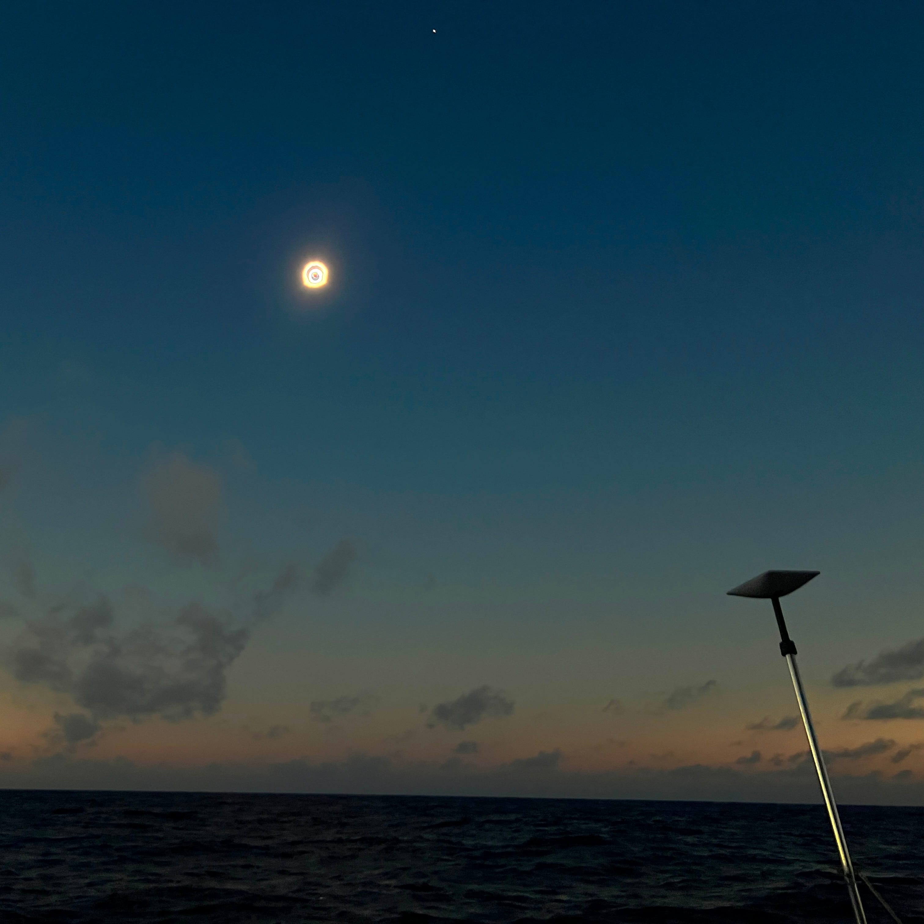 We needed to swap out our failed Gen2 dish with a spare. We’ve got a long passage coming up, and the failed dish won’t hold a connection while we are sailing.