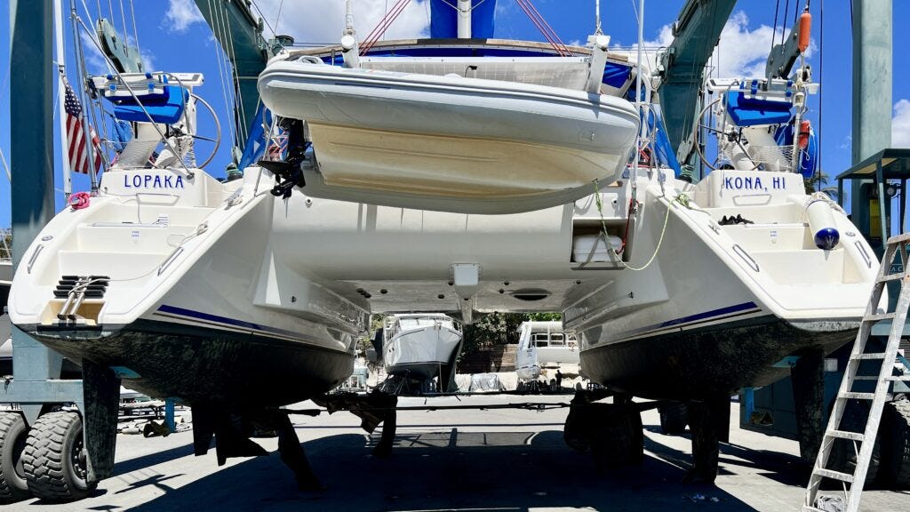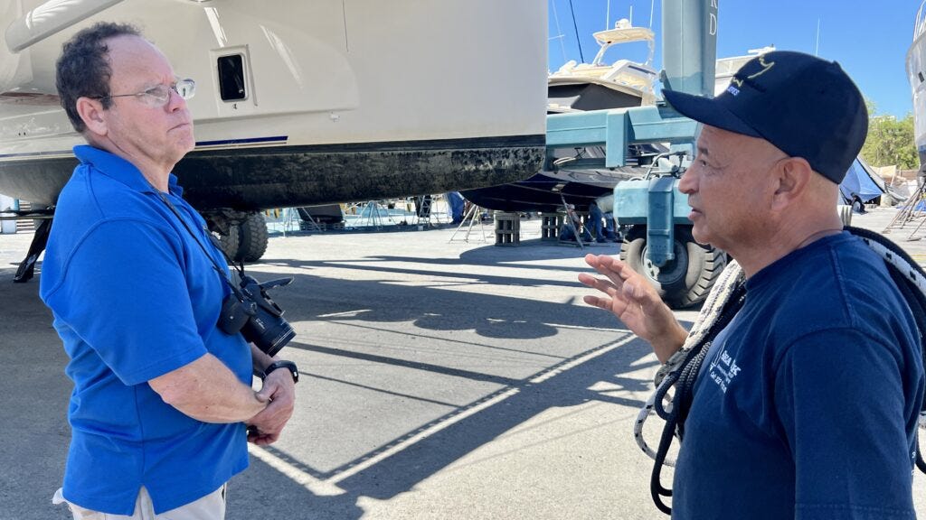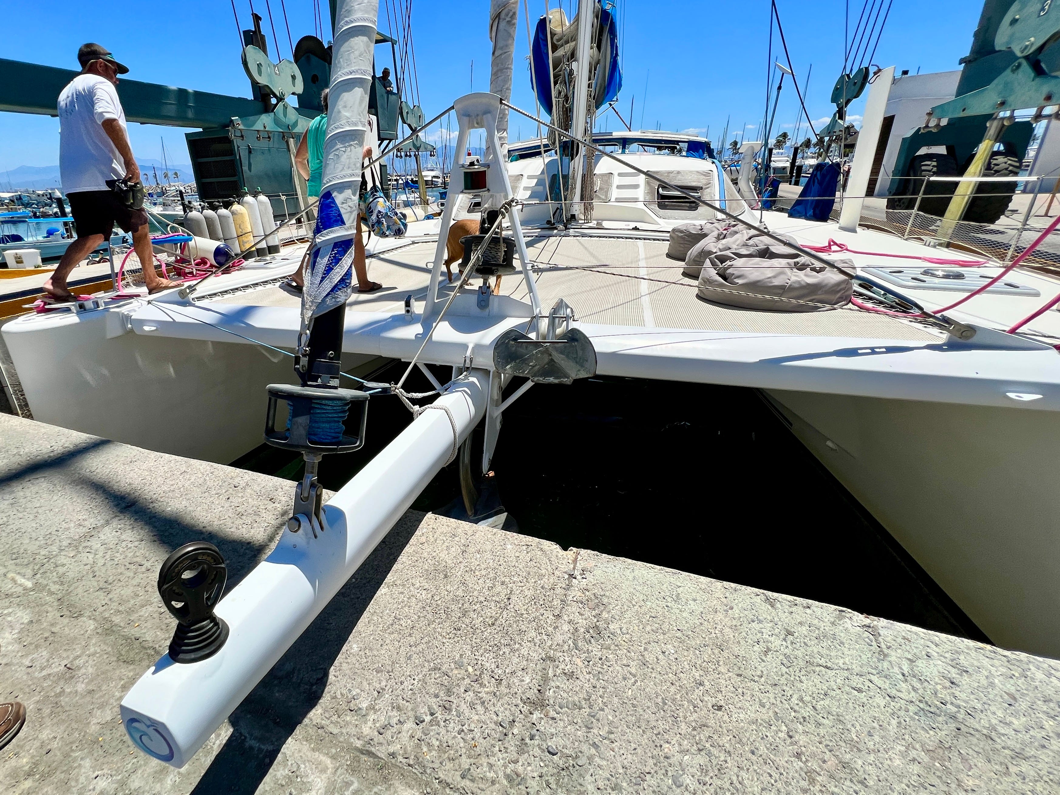 We wanted Bill as our surveyor for several reasons. First, he is an expert in ocean-going catamarans. Second, he was the recent past president of SAMS, the Society of Accredited Marine Surveyors. Third, about ten years ago, Bill surveyed the boat in San Diego when she had her main bulkheads reinforced. He knew the boat well, and he was eager to see how those modifications had held up over the past decade.