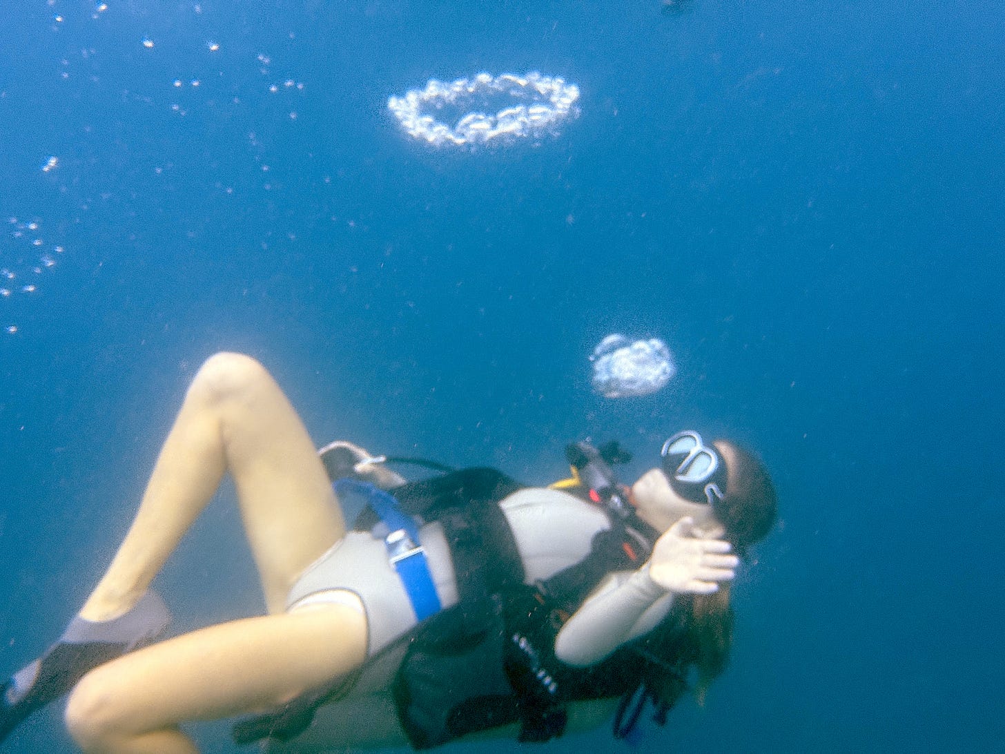 Viani Bay also reunited us with our buddy boat Chaos, with whom we crossed the Pacific last year. We last saw them a year ago in Mo’orea in French Polynesia. It was great to be back together again. They’ve also been bitten by the scuba bug, and we all dove Rainbow Reef together.